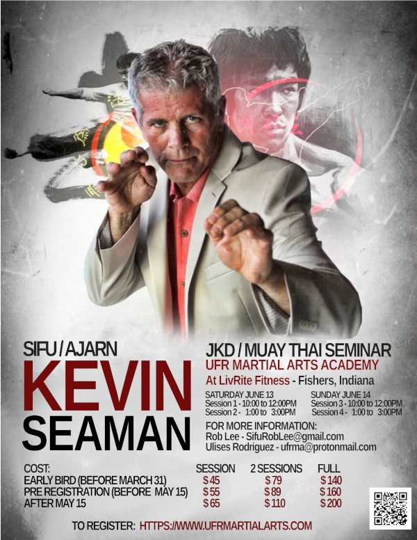Jeet Kune Do top expert and Muay Thai ajarn, Kevin Seaman will be teaching a seminar on June 13 and 14 in Indianapolis.